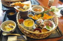 女性が好きそうな少しづつで種類が多いおかずと季節の花の演出でとてもきれいな篭盛りでした。